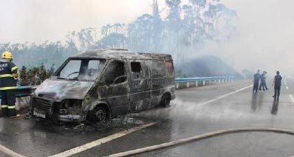 4月15日11時(shí),廣西橫縣六景鎮(zhèn)至欽州港高速距金桔收費(fèi)站約1公里處,一輛由南寧市開(kāi)往欽州產(chǎn)業(yè)園區(qū)的運(yùn)鈔車(chē)起火,大火引燃了11箱鈔票和路邊的灌木叢,引發(fā)了熊熊山火?;饎?shì)隨后被趕到的消防官兵撲滅。